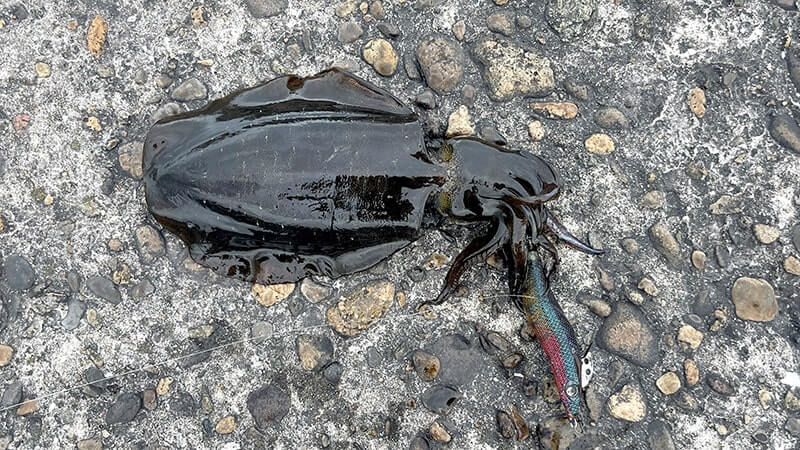 墨を吐かれてエギが真っ黒になっちゃいましたが。