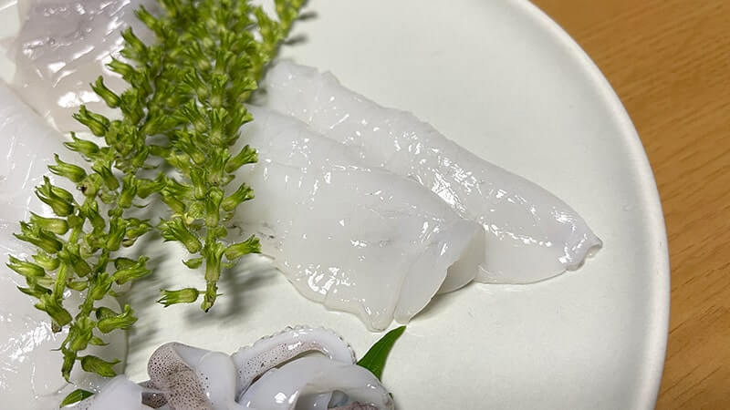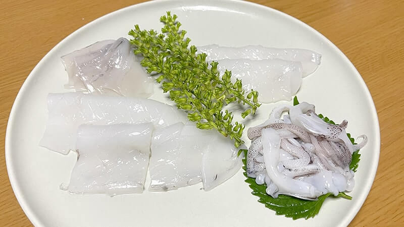 釣りたてのアオリイカは噛むたびにじんわりと甘みが湧き上がり、湯引きしたゲソは適度な弾力で満足度高し。