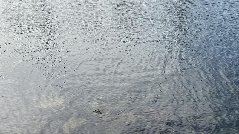 どうせ簡単ではないでしょ、とエギの動きを見ようとアンダースローで手前に投げた一投目……。