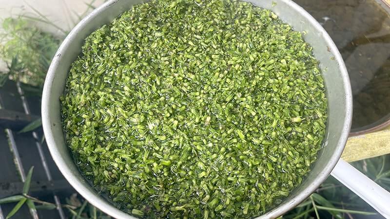 収穫したシソの実は軽く洗い、塩をして水気を絞って常備菜に。