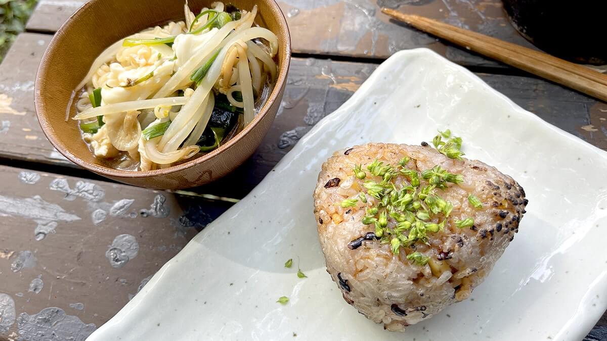 定番の焼きおにぎりに、お腹が減ったので即席麺付き(笑)