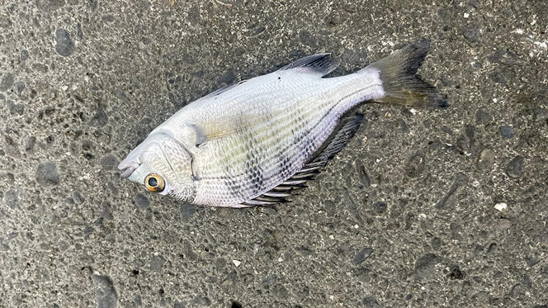 仕方なく、車に載っていたテナガエビ用の針で続行。