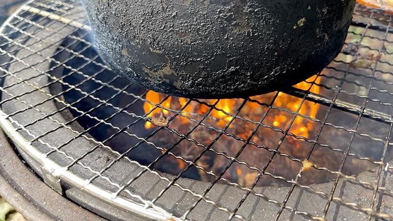 火にかけるというよりは、煙でスモークするようなイメージ。
