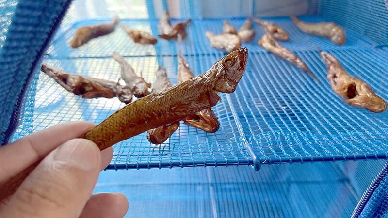 焼いた後は、干しカゴに入れて数日干しまして……。