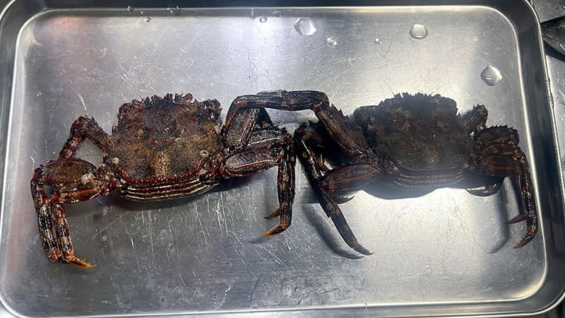 堤防やテトラでよく見られますが、食べる人は少ないショウジンガニ。