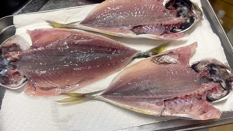 調理すると言っても簡単に、開いて塩水に漬けて干物に。