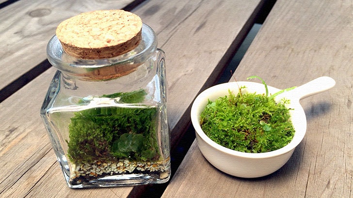 その苔を家の中に持ち込んで眺めるのに向いているのが、苔テラリウム。密閉した瓶の中が自然空間のようになりほとんど手間がかからずに管理できるので、室内で鑑賞するのに便利なのです。