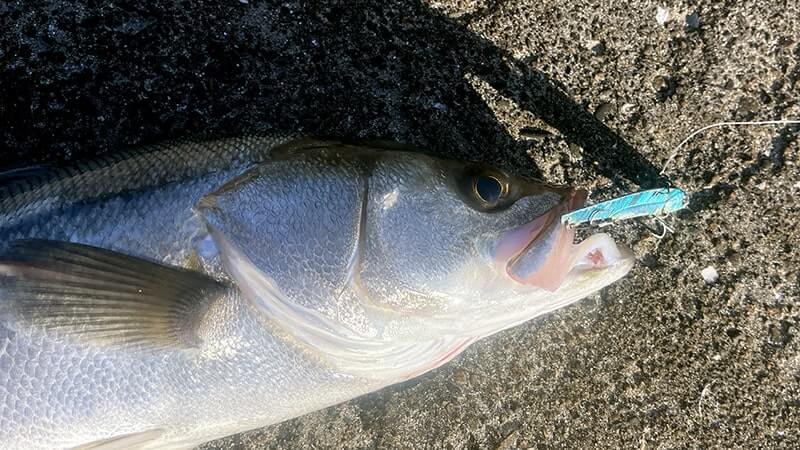 マイワシ釣りを楽しんだ後にシーバスをキャッチ