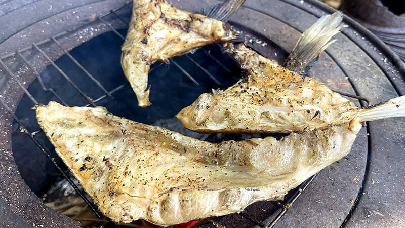 スズキのアラの塩焼きとマイワシの一夜干しで朝食